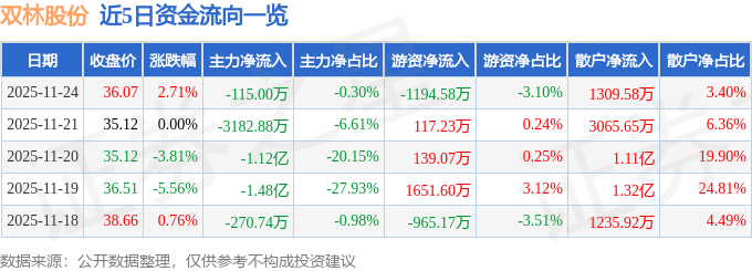本站音问股票配资炒股网,适度2025年11月24日收盘,双林股份(300100)报收于36.07元,飞腾2.71%,换手率1.96%,成交量10.79万手,成交额3.86亿元。